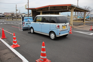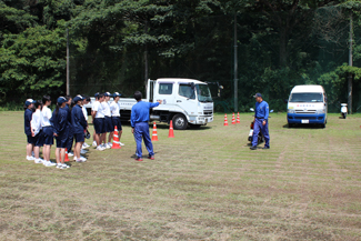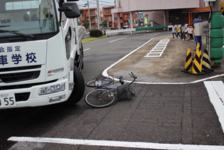 実技では、実際のトラック・普通車・バイク・自転車等を用いて